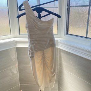 Channel your inner greek goddess with this stunningly simple cream bodycon dress