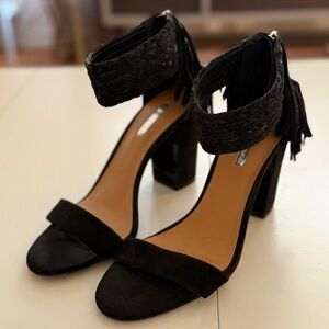BCBG Calizi Black Luxury Frill Suede Block Heel Ankle Cuff Sandal 8