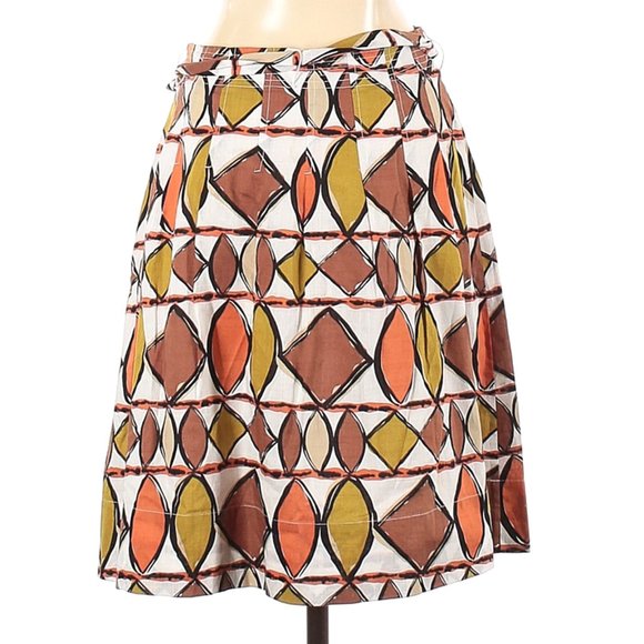 Like new BCBG lined cotton print skirt with matching tie belt in a cute Aztec style print
