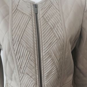 Beautiful BCBG faux leather Quilted beige short jacket.