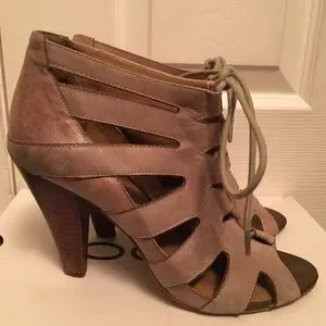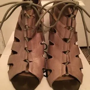 Beige. Lace up. Size 8. Worn quite a bit but still in good condition.