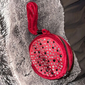 💕🤍🖤Rare stunning really cute chic style BCBG Generation Vintage Velvet burgundy studded round wristlet small bag Approx measurements fyi really small cannot fit my iPhone 11 Pro Max barely worn condition photographed same day shipping from smoke free home