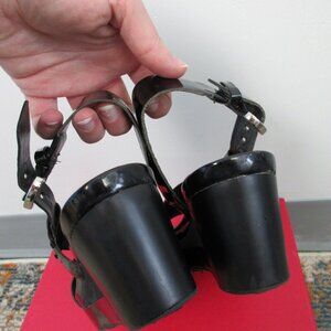 BCBG Girls Patty Women 7 Black Sandals Open Toe Wedge Heel Chunky y2k Brat 548
