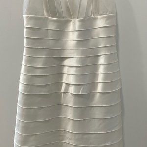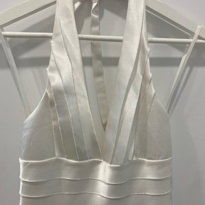 BCBG mummy halter dress, silk, knee length. Brand new, never worn. Stretchy for movement, A line fit, makes it fit a little bigger around hips. Size 4 person could wear this easiy.