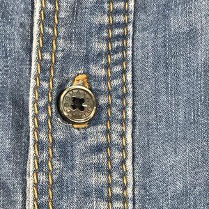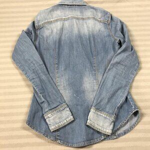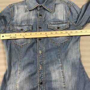 BCBG Jeans Denim Shirt Womens Small Blue Western Snap Front Long Sleeve Fitted