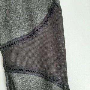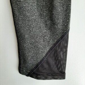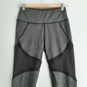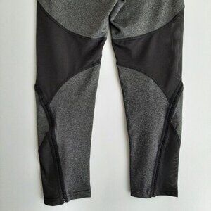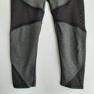 • Stretchy black 3/4 length crop leggings in grey with black mesh panels. Small inner waist pocket.