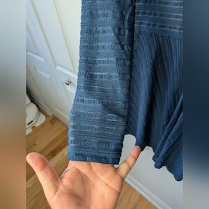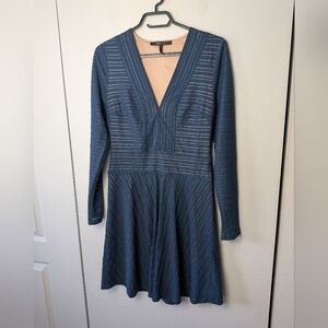 BCBG MAXAZRIA Navy Blue Fit Flare Dress Size Small Stripes Long Sleeves