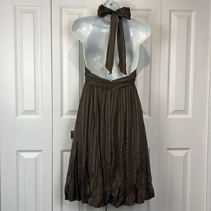BCBG MAXAZRIA Silk Bronze/Brown Empire Waist Halter Dress Size 4