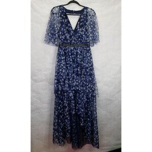 BCBG Max Azria Maxi Dress Women 6 Kaleidoscope Navy Floral Chiffon Tiered Hi-Low