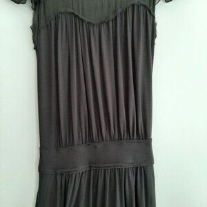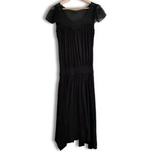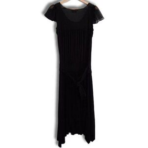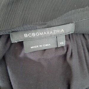 BCBG Max Azria Pleated Defined Waist Knee Length Midi Dress Black Sz XS