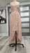 100% silk. This elegant pink strapless dress is perfect for any special occasion. Its flowing design offers a flattering fit, making it a must-have addition to your wardrobe.