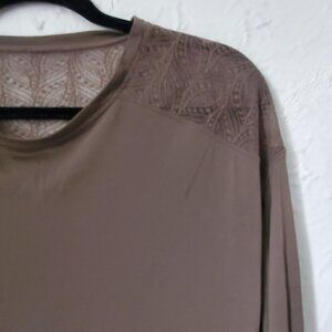 Fabric body: 100% rayon jersey; fabric 2: 100% nylon lace; lining: 80% polyester, 20% spandex mesh