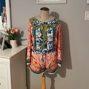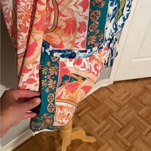 Multi-color, zip front and lined from waist down. Perfect for any occasion or vacation wear. Great with flats or add heals for an evening out. Perfect condition like new. Machine wash or dry clean. Fun, fashionable & unique