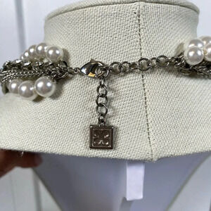 BCBG MaxAzria | Elegant White Faux Pearl & Silver Necklace - multi strand