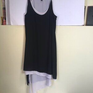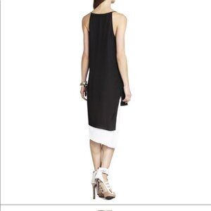 BCBG MaxAzria Gigi Asymmetrical Double Tank MIDI Dress Flowey Black White 1,