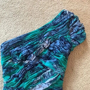 BCBG MaxAzria - ‘Mia’ Emerald com one shoulder stretchy ruched dress - XSmall