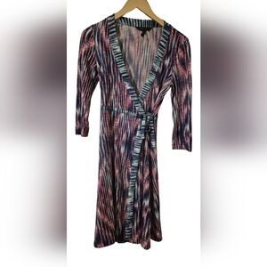 BCBG MaxAzria Pink and Blue Wrap Dress Fit and Flare V-Neck