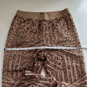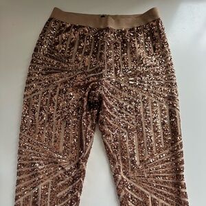 BCBG MaxAzria Size L Rose Gold Sequinned Leggings
