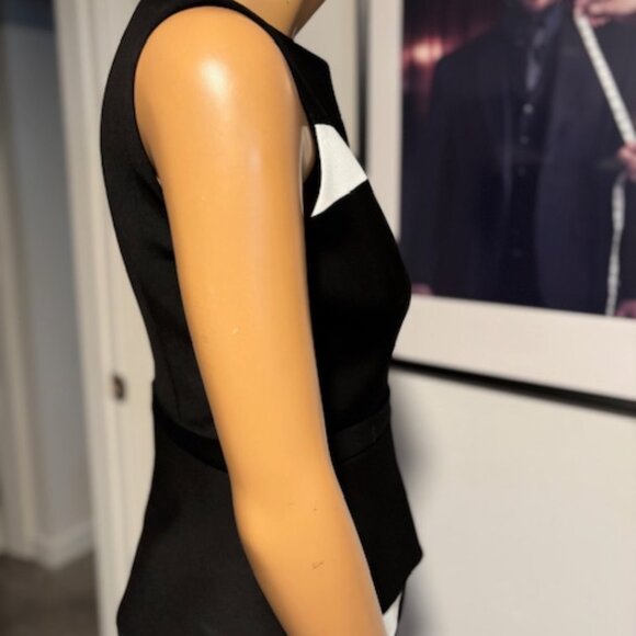A beautiful structured top with black and white details, layered, and concealed center back zipper closure. Sz M, Pit to Pit 17.5 inches. Super cute for office or evening.