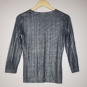 BCBG MaxAzria Small Silver Long Sleeve Metallic V-neck Sweater Top