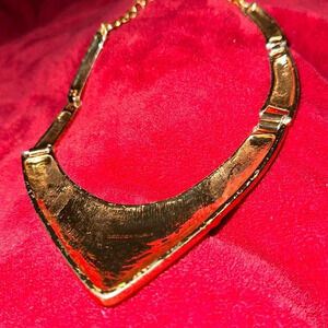 ⭐️Rare Stunning Glam piece! Good preloved condition choker bib style Statement faux leather gold tone detail runway ready necklace tarnish wear on hook same day shipping from smoke free home