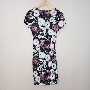 BCBG MaxAzria Small Short Sleeve Pink Floral Print Faux Wrap V-neck Dress