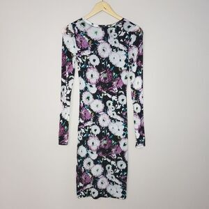 BCBG MaxAzria XSmall Long Sleeve Purple Blue Floral V-neck Bodycon Tori …