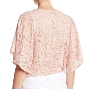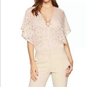 BCBG Maxazria Beats Flutter Sleeve Lace-Up Front Lace Bodysuit