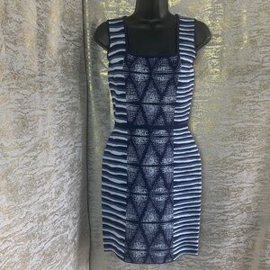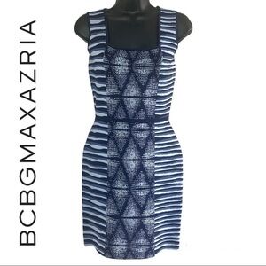 BCBG Maxazria Blue/White Ribbed Knit Hailey Shibori Dress Size M