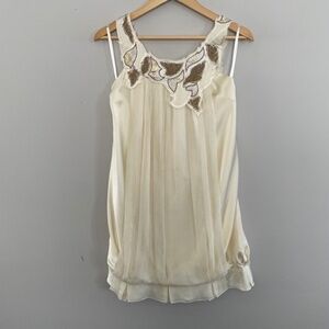 The dress is ivory colour, Size 6 Chest pit to pit 15" top of Shoulder to Hem 35"