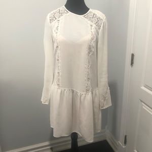 BCBG Maxazria Feminine Lace Detail Cottagecore/ BOHO Lined White Dress