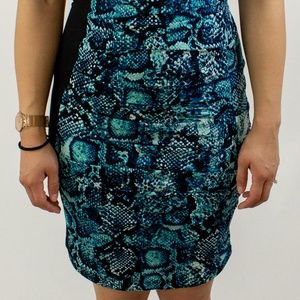 BCBG Maxazria Green and Black Snake Print Dress. Bought at an outlet mall. Used.