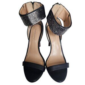 BCBG Maxazria Leather Stiletto Sandals With Cuff Ankle Strap Black Silver Size 9