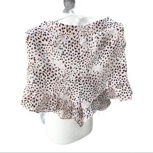 BCBG Maxazria Pink Rose Animal Print Shorts with ruffles. Super cute! New with Tags. See measurements. Side pockets, 14 inches from top band of shorts to crotch area.