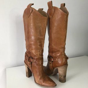 AMAZING LOOKING BOOTS! Pre-Owned RARE Women's 8.5 Size BCBG Maxazria Rusty Tan Leather Boots. Cowgirl inspired.