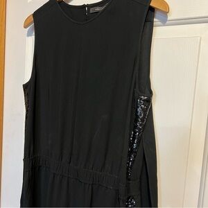 Gorgeous draped upper top with wide leg BCBG jumpsuit. Beautifully designed to have that long silhouette that will turn heads. Black trimmed with Back Sequence, Round neck & three button closure. Sexy tulip peek-a-boo back opening includes supporting bra strap. 10/10 Excellent condition💕