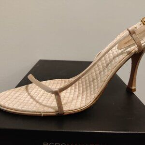 Used BCBG Maxazria Strappy Satin Sandals with leather sole