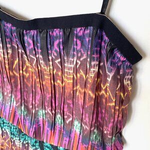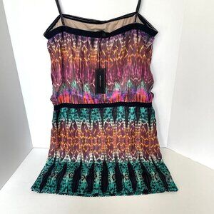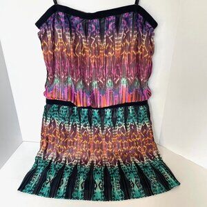 BCBG Maxazria Strapless Mini Dress Large Pleated Georgette Boho Tribal
