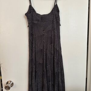 Small soft flowing 90s dress from BCGG Maxazria. Super cute with dot fan pattern and adjustable straps. Great to style by itself or layering!