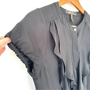 BCBG Maxazria fitted dress with short sleeves, ruffled, knee length, silk