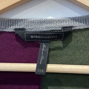 BCBG Maxazria merino wool geometric block color sweater pullover XXS v neck