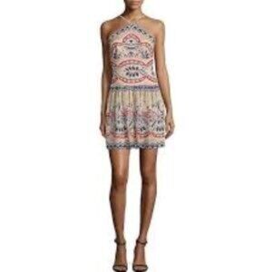 BCBG Mesh Lace Fleur Drop Waist Mini Halter Flounce Dress Party
