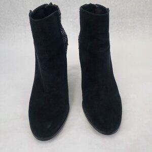 BCBG Milan Stiletto Ankle Booties Women's 9.5B Black Leather Suede & Glitter Zip