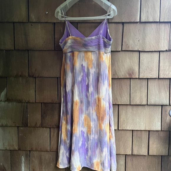 BCBG NEW YORK Women's Sleeveless Pleated Midi Dress Lilac Yellow Sundress Size M