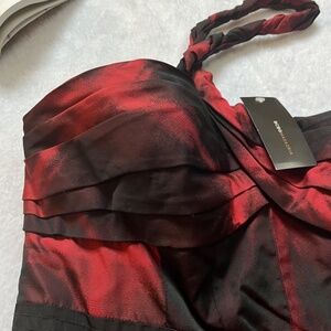 BCBG One Shoulder Black Red Mini Taffeta Dress