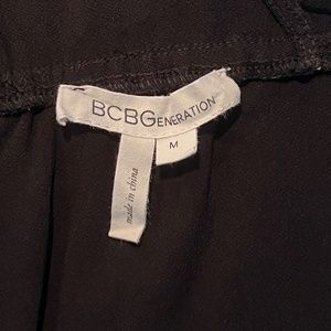 Asymmetrical skirt at front with pleat detail at front elasticized waistband.