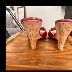 BCBG Paris Red Leather & Cork Slide Heels – Size 9