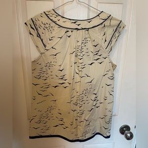 BCBG cream coloured blouse with navy detailing and pattern. Cute little pocket on the side. Size XXS but fits more like a true small.
