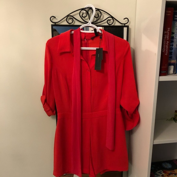 Never worn BCBG romper. Gift from mom a few years ago but is yet to fit me so finally ready to part with it. Colour is a vibrant coral red (more on the red side).