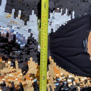 Details: Stunning gold, black, and silver sequins on the front for a luxe, eye-catching finish